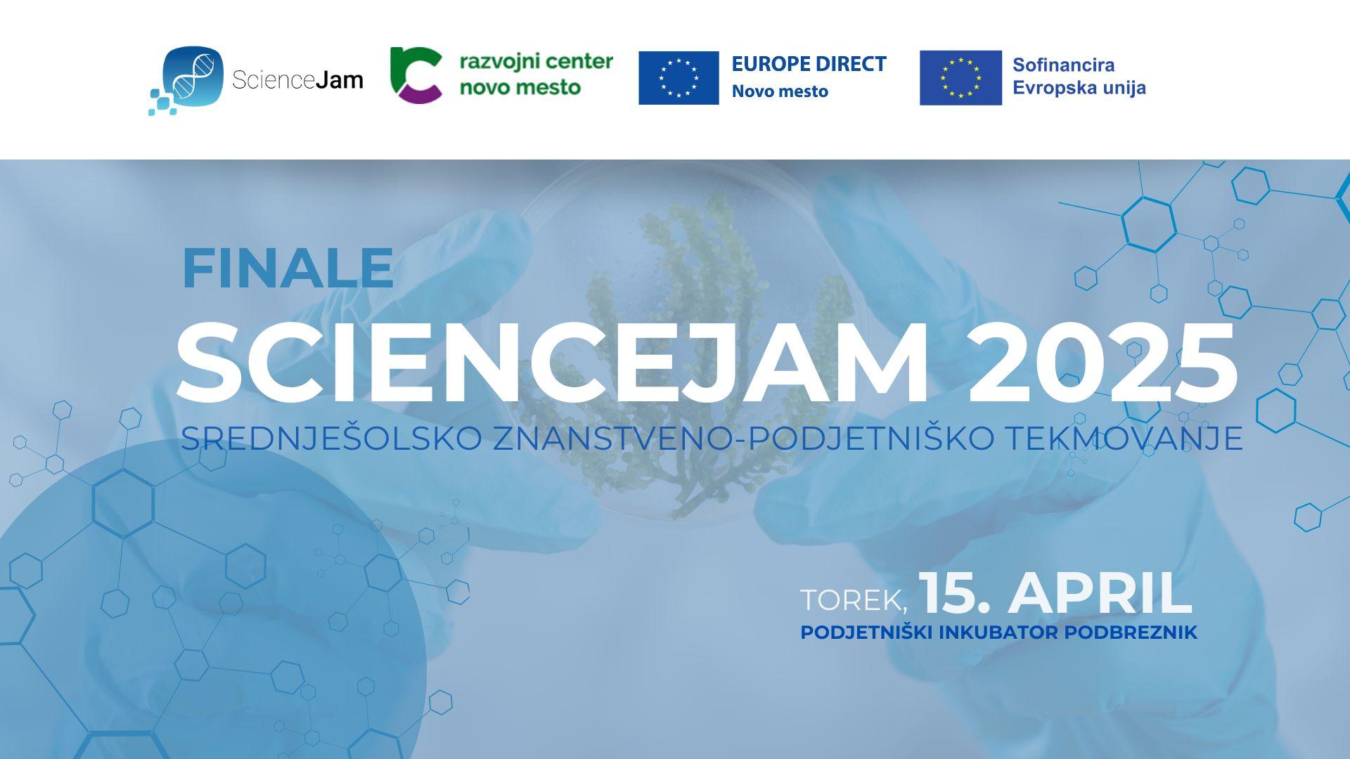 Informacijska točka EUROPE DIRECT Novo mesto, ki deluje pod okriljem Razvojnega centra Novo mesto organizira zaključni dogodek ScienceJam, tekmovanje tržno usmerjenih znanstvenih projektov za srednješolce. Na njem tekmujejo z znanstvenim projektom, za katerega so razvili tudi poslovni model. V finalu bo nastopilo osem ekip iz vse Slovenije, med njimi pa bo štiričlanska strokovna komisija na podlagi predstavitev in izdelanih raziskovalnih nalog izbrala zmagovalce. ScienceJam mlade spodbuja k študiju znanosti in tehnologije in odpira vrata zelenim in digitalnim delovnim mestom prihodnosti.