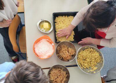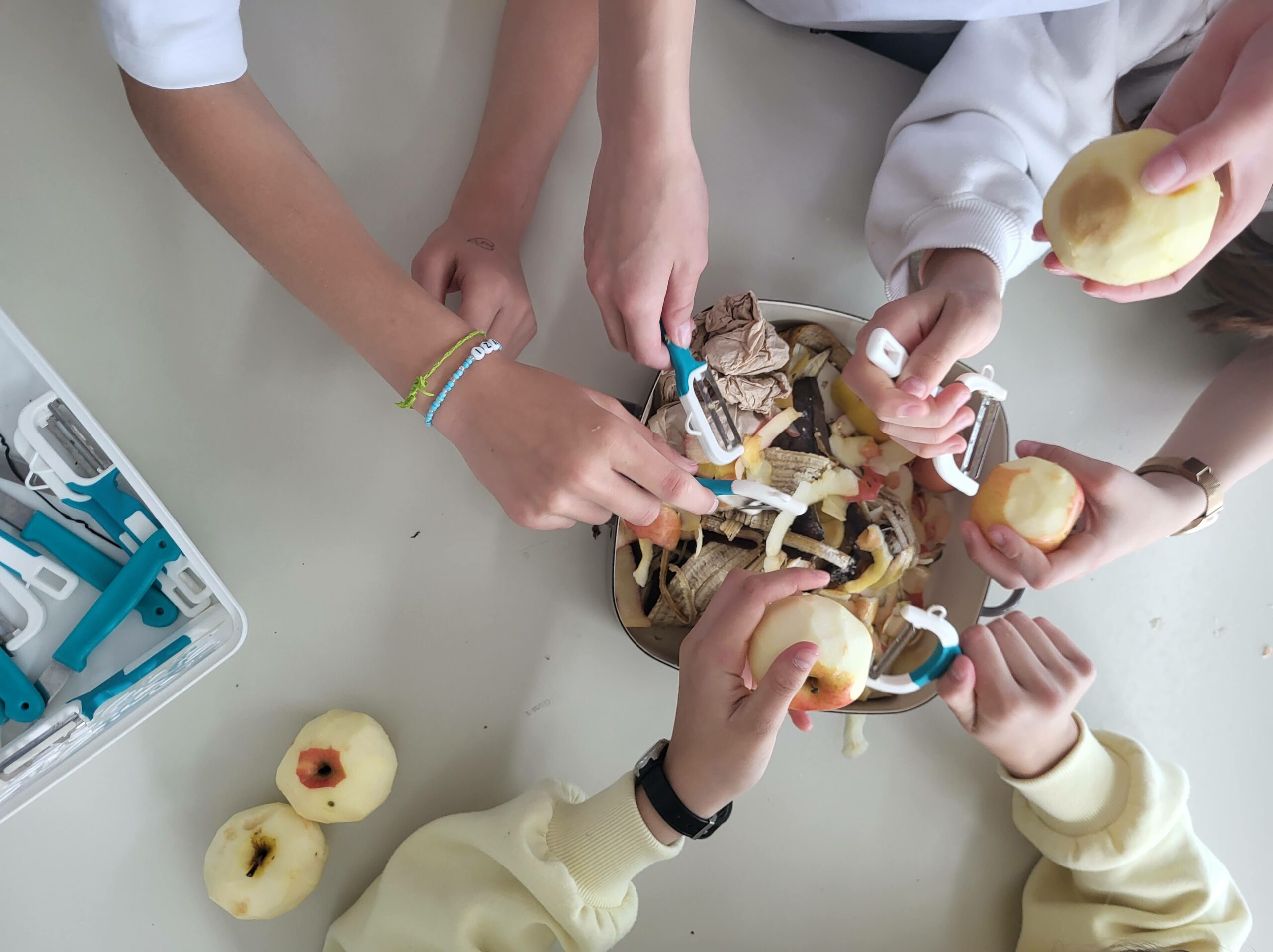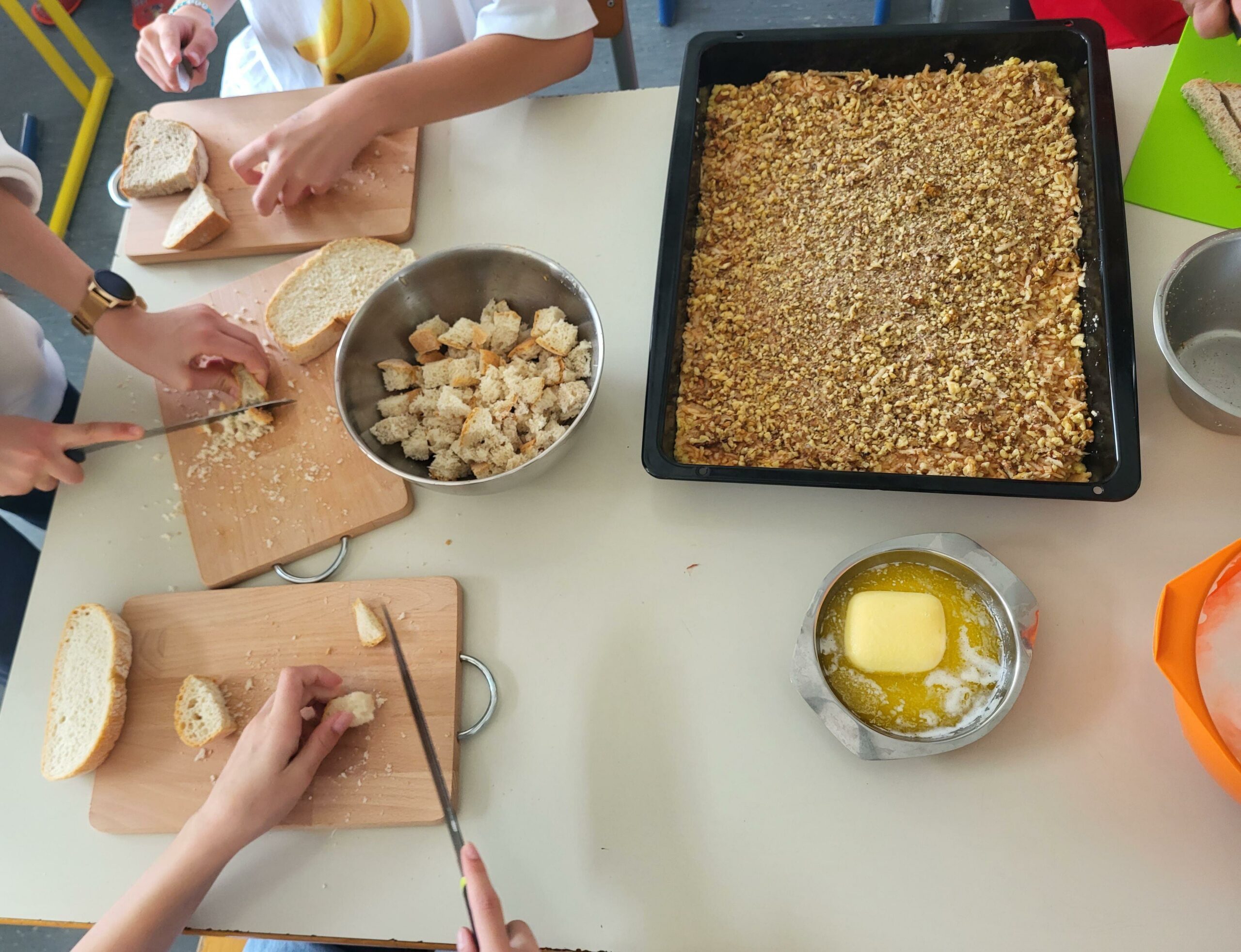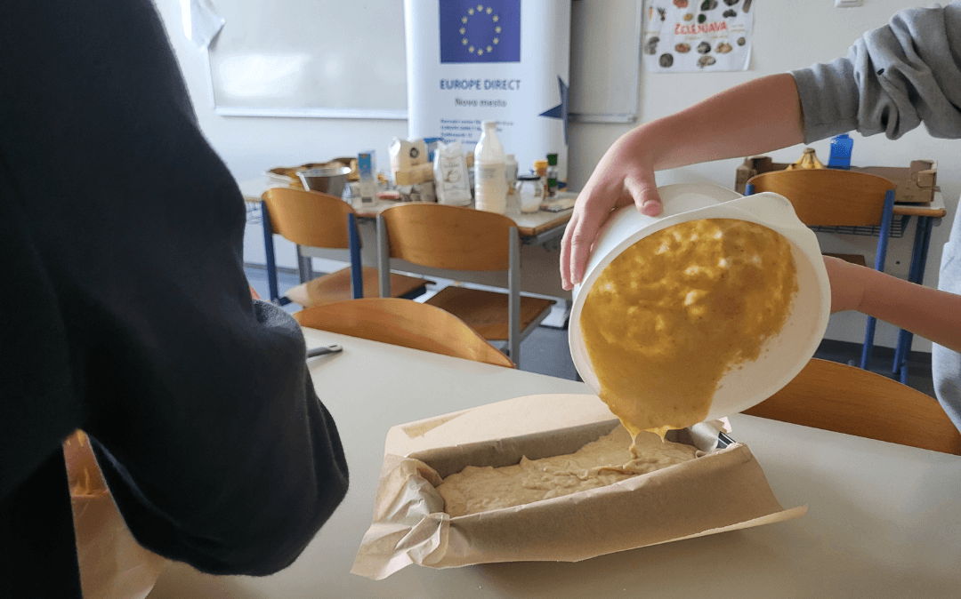 Učenci so iz zrelih banan in suhega kruha pripravili dva preprosta, a okusna obroka. Ob tem so skozi pogovor in praktično delo spoznavali, zakaj je pomembno, da hrano porabimo premišljeno in kako lahko tudi doma preprečimo nastanek odpadkov. Skozi delavnico so bile predstavljene vsebine Evropskega zelenega dogovora, ki med drugim poudarja pomen zmanjševanja količine zavržene hrane, trajnostnega prehranskega sistema in odgovornega ravnanja z viri. Skupaj lahko prispevamo k majhnim, a pomembnim korakom k zeleni prihodnosti.