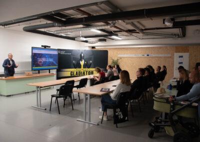 - in 9. maja sta se v Podjetniškem inkubatorju Podbreznik odvila prva dogodka, na katerih sta navzoče in bodoče podjetnike navduševala predavatelja in botra številnih startup podjetij Islam Mušić in vodja programa Marko Vukobrat. Dogodke so poleg udeležencev popestrili tudi gosti dr. Janez Povh (Rudolfovo – znanstveno in tehnološko središče Novo mesto), kot komentatorja Simon Jeraj (vodja inkubatorja – Razvojni center Novo mesto, d. o. o.) in dr. Ana Hafner, posebno vzdušje pa je pričarala dolenjska glasbenica Špela Cesar. Med gosti je bil tudi Matej Malenšek, katerega izdelke smo lahko gledali tudi na Ambientih, sicer pa je zmagovalec prvega gladiatorja po izboru občinstva (mwskate.si). Nova sezona se je po besedah vodje startup programa začela stopnico nad pričakovanji, za kar se iskreno zahvaljuje vsem udeležencem in celotni ekipi. Prijavljene ekipe v veliki meri sestavljajo izjemni posamezniki in posameznice, ki imajo za seboj bogate izkušnje in zavidljive reference. Vse to nam daje dodaten zagon in inspiracijo, da se veselimo prihajajoče jeseni, ko se bodo najboljše ekipe ponovno predstavile na velikem odru pred številnimi gosti, naložbeniki, novinarji in drugimi podporniki. Kaže, da bodo številni uspešni gladiatorji, kot so BubbleBite (www.bubble-bite.com), Reusable Technologies (https://carbon-zero.tech/), Fungalist (www.fungalist.si), Marivelle, d. o. o. (www.marivelle.eu) in še mnogi drugi, kmalu dobili dobro družbo!