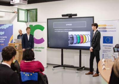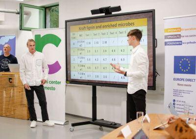Komisijo v sestavi dr. Jelena Topić Božič, Inštitut Rudolfovo, mag. Nina Dremelj, Poslovni angeli Slovenije, mag. Luka Mali, Senzemo, in dr. Berta Košmrlj, Fakulteta za kemijo in kemijsko tehnologijo, je s svojo predstavitvijo najbolj prepričala ideja dijakov Gimnazije Vič o depolimerizaciji lignina. Drugo mesto je osvojila ekipa Sluguard s Kmetijske šole Grm in biotehniške gimnazije Novo mesto, tretje pa ekipa SunSipClean prav tako z Gimnazije Vič.