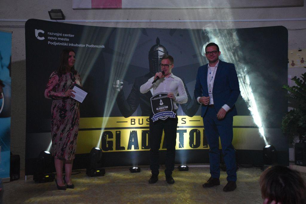 Na večernem dogodku so podelili tri nagrade. Komisijo v sestavi Aleš Čadež, vlagatelj sklada Silicon Gardens, ustanovitelj in direktor podjetja Kaldi, Nina Dremelj, predsednica kluba Poslovni angeli Slovenije, in Rok Primožič, soustanovitelj uspešnega dolenjskega startupa Bubble Labs, d. o. o., ki je nastal ravno pod okriljem programa Business Gladiator, je najbolj prepričala zgodba Kristjana Stoparja in Urbana Košaleta, ki sta torej osvojila tudi skupno zmago. Občinstvo pa je navdušila ideja Mateja Mohorčiča, Vida Urha in Jakoba Ruparja DEMVOL – gre za tehnološko rešitev za nadzor tovora. »Ta nagrada je še ena taka potrditev, ker včasih to potrebuješ, ko greš stopnico po stopnico, in to je ena taka zmagovita stopnica, tako da nam je to spodbuda za naprej. Ideja je pametna ploščica za premagovanje odvisnosti od telefona Humanodoro, poleg je še aplikacija, koncept je pa tak, da spodbuja, da čim manj uporabljamo telefon in vzpostavimo to zdravo navado,« je izpostavil Kristijan Stopar.